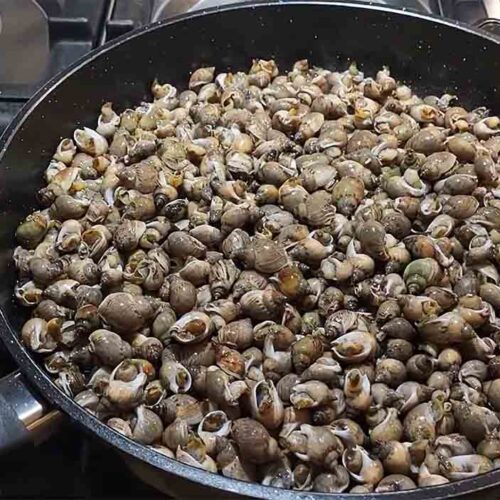 - Metti le lumachine di mare in acqua salata per circa un’ora per eliminare la sabbia, poi sciacquale più volte sotto acqua corrente.